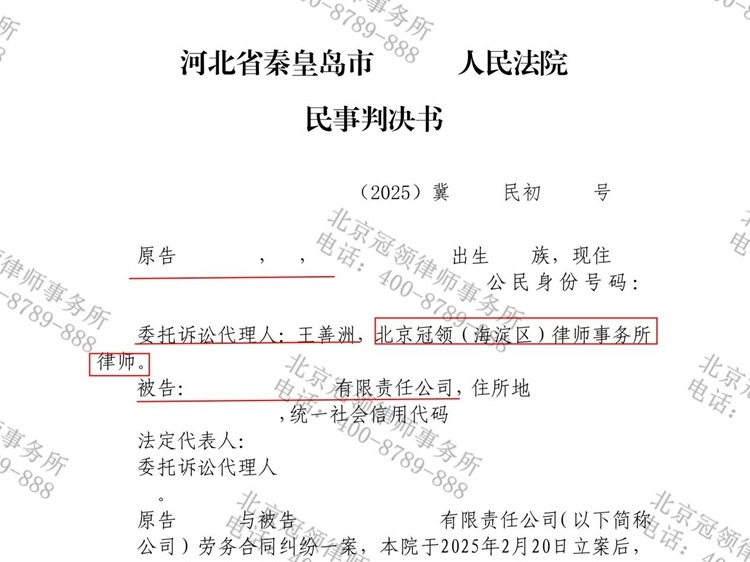 2024年11月,郑女士因被河北秦皇岛某食品公司长期拖欠劳务报酬,求助到北京冠领(海淀区)律师事务所,冠领律师接受委托 【查看全文】