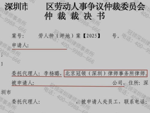 2025年,冠领律师代理高进(化名)与用人单位的工伤待遇争议一案,在深圳市某区劳动人事争议仲裁委员会取得胜诉裁决。仲裁庭 【查看全文】