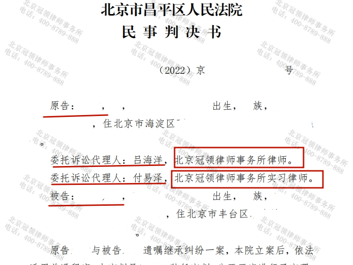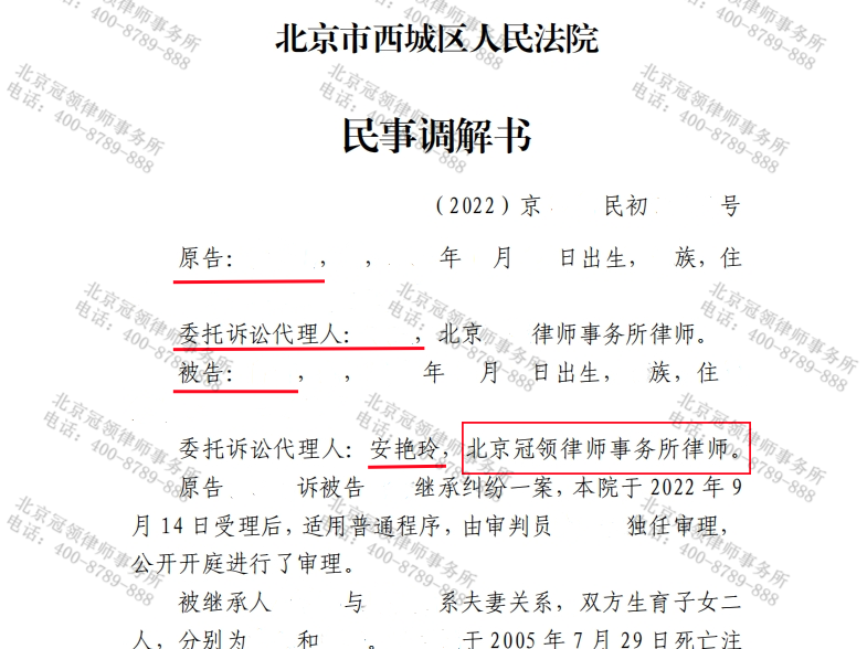 北京冠领律师事务所周旭亮主任、任战敏执行主任督导,张修毅律师代理的北京丰台法定继承纠纷案,经由北京市丰台区人民法院主持调 【查看全文】