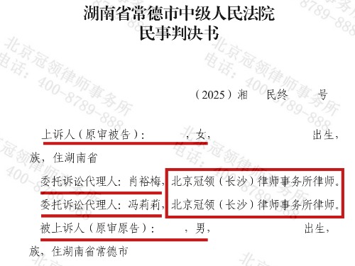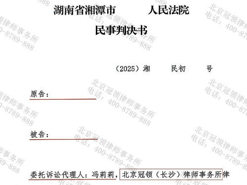 2025年6月,湖南省湘潭市人民法院审结一起离婚纠纷案件。在被告安淑婷委托北京冠领(长沙)律师事务所律师代理应诉后,法院 【查看全文】