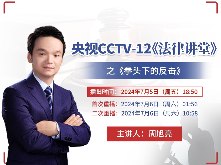 由北京冠领律师事务所主任周旭亮律师主讲的《法律讲堂》——《拳头下的反击》,将于7月5日(周五)18:50在中央广播电视总 【查看全文】