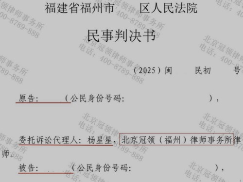 2025年11月,冠领律师代理的福建省福州市民间借贷案,经由法院审理作出判决。法院判决支持了原告孙成龙的诉讼请求,判令被告孙威10日内返还借款本金30万元及相应利息。