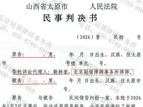 山西太原的冯先生因同村林某长期拖欠借款,委托北京冠领律师事务所指派的律师提起诉讼。冠领律师细致梳理在案证据,认真核算本金利息,于2026年2月获法院判决:林某与冯先生的借贷关系成立,其限期返还冯先生本金15.6万元及相应利息。