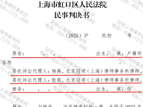 冠领律师代理上海虹口法定继承纠纷案助老人继承价值280万房屋...