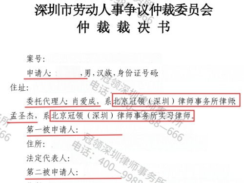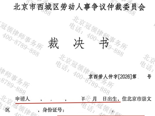 冠领律师代理北京劳动纠纷案帮委托人共拿到44万...